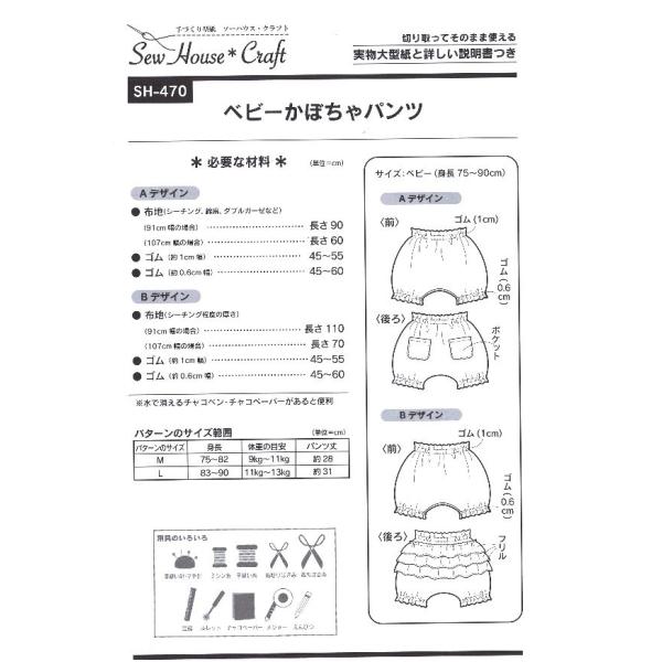 型紙 パターン ベビーかぼちゃパンツ ベビー 身長75 90cm No Sh 470 ソーハウスクラフト サンプランニング Sh470 あなたの街のミシン専門店創作工房 通販 Yahoo ショッピング